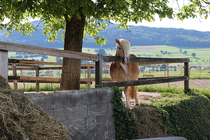 Auf 8 Hektar Land genießen unsere Pferde in Zweier- bis Vierergruppen ihren Auslauf. Alle Koppeln sind mit Matschpaddocks für die nassen Herbst- und Wintertage ausgestattet.
