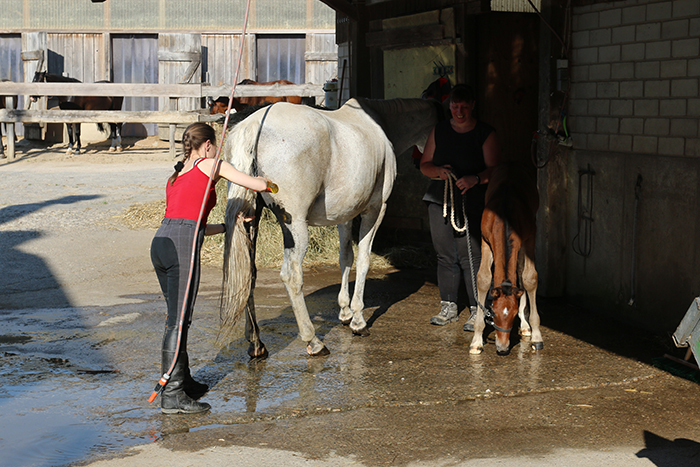 Wir haben je 3 Putz- und Waschplätze auf unserem Hof.